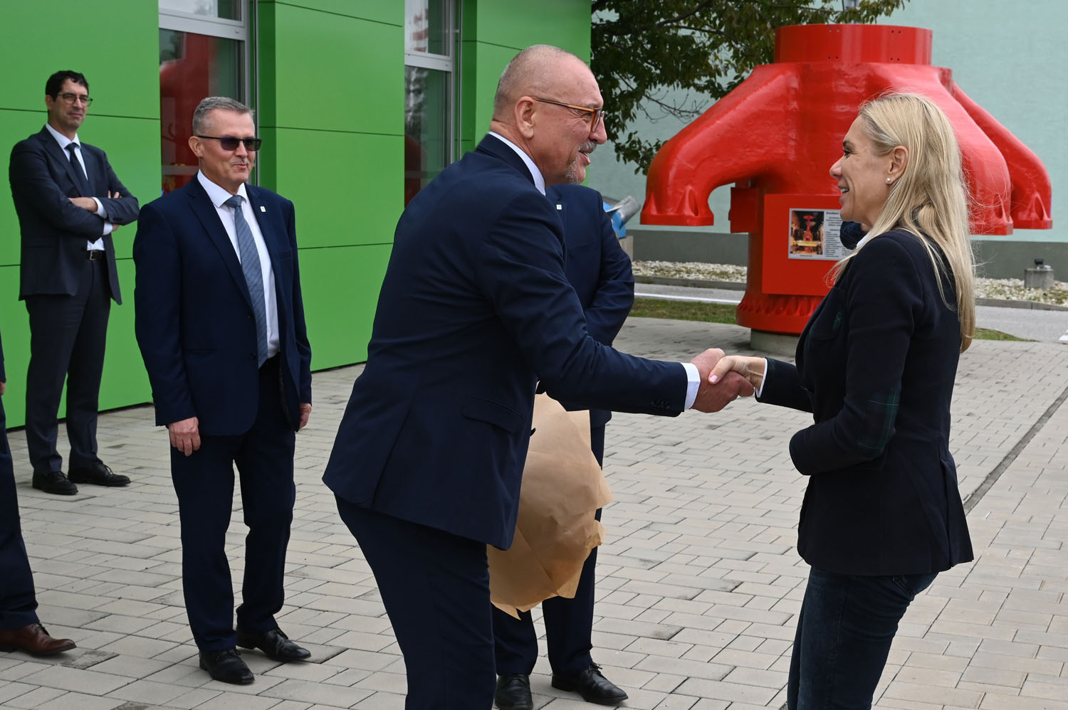 Našim hosťom sme predstavili aktuálne projekty spoločnosti, jej bezpečnostné výsledky a investičné priority, ktoré predstavil Michal Belianský. Eva Hrašnová načrtla dosiahnuté míľniky, časový harmonogram ďalších krokov a náš prístup k radiačnej ochrane a environmentálnemu manažmentu. Hostia si potom prehliadli priestory vyraďovania V1 na mieste a ocenili viditeľný pokrok, silné zameranie na bezpečnosť a otvorenú komunikáciu.