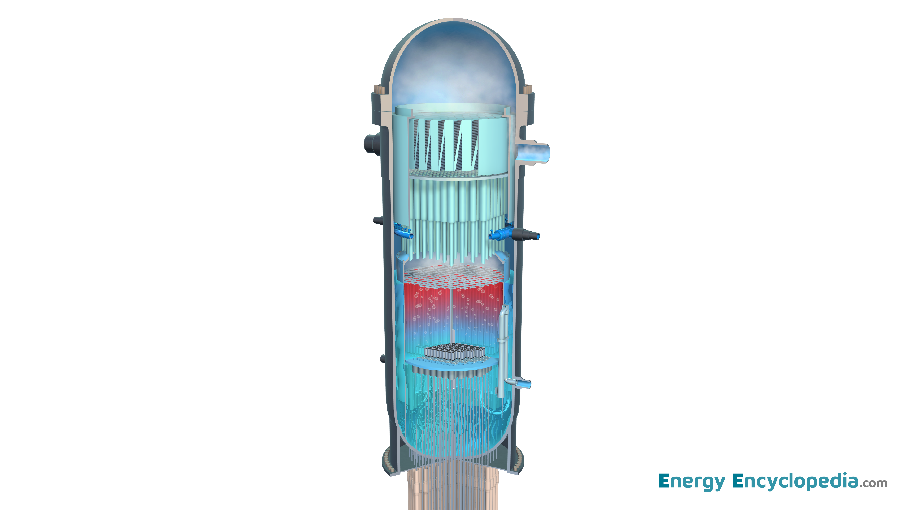 Voda, ktorá slúži ako moderátor aj chladivo, sa v hornej časti aktívnej zóny varí a vznikajúca para je odvádzaná do strojovne, kde priamo poháňa turbínu. Tlak chladiacej vody v reaktore je približne 7 MPa a teplota pary dosahuje okolo 280 °C, čo je menej ako v parogenerátoroch elektrární s tlakovodnými reaktormi.